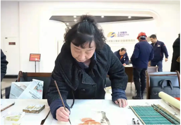 此次活動,公司邀請了來自市書法協(xié)會的書法老師們蒞臨現(xiàn)場,展示書法藝術精髓,弘揚中國特色的傳統(tǒng)民間文化?!按猴L浩蕩展鴻圖、虎步奔騰開勝景”、“茶緣廣裕業(yè)有孚、新程奮進正當時”......老師們妙筆生花,一對對喜氣的虎年春聯(lián)、年畫,烘托出濃濃年味;一句句美好的祝福,伴著墨香暖人心扉。上洋家人們趁工作休息間隙紛紛前來挑選心儀的虎年春聯(lián)、年畫,與老師們合影留念,現(xiàn)場一片溫馨祥和的喜慶氣氛。